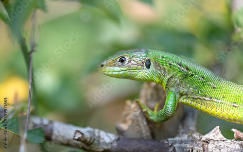 © D. Jakli, Obraz premium Western green lizard in a bush