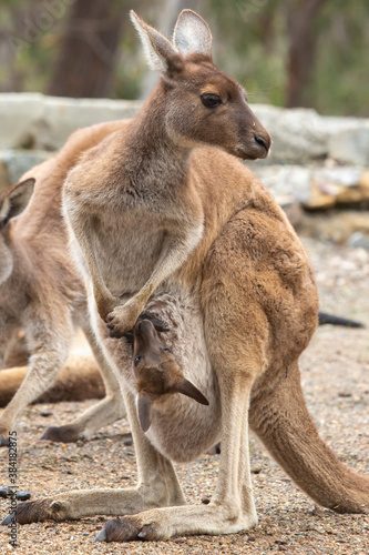 Fototapeta premium Western grey kangaroo with Joey in John Forrest National Park, Perth, Western...