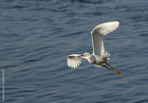 Fototapeta premium Western reef heron white morphed in flight, Bahrain