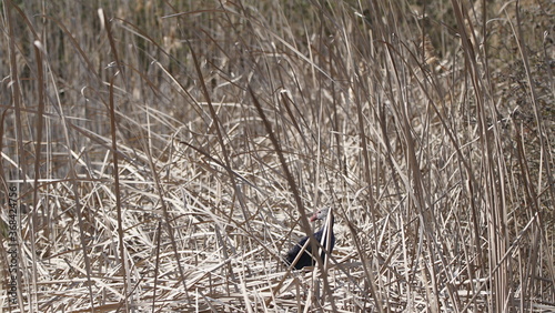 © adventure, Obraz premium Western swamphen (Porphyrio porphyrio) in natural wild habitat in the reeds, captured in Azerbaijan, Caspian Sea
