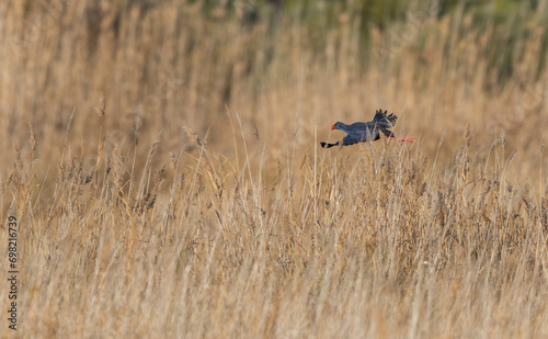 © ezequiel, Fototapeta premium Western Swamphen un flight over the marsh