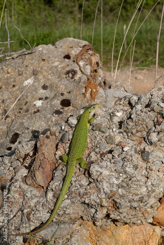 Fototapeta premium Westliche Smaragdeidechse, Lacerta bilineata
