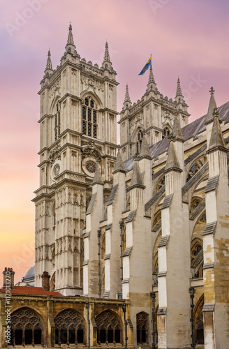 © Mistervlad, Fototapeta premium Westminster Abbey at sunset, London, UK
