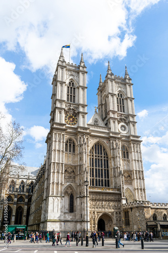 Fototapeta premium Westminster Abbey, London England, Sunny day blue sky