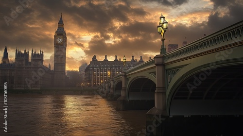 Naklejka premium Westminster Bridge, the Houses of Parliament, and Big Ben in London.