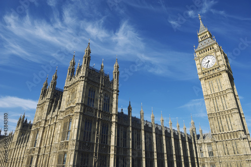 © lazyllama, Fototapeta premium Westminster Palace and Big Ben London Blue Sky Horizontal
