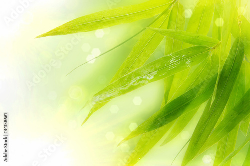 © Laure F, Fototapeta premium Wet bamboo leaves on white background.