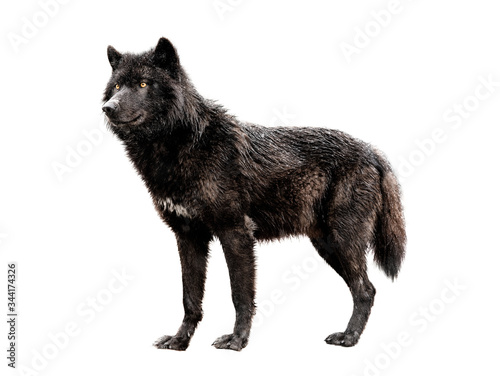 © fotomaster, Fototapeta premium Wet canadian black wolf isolated on white background.