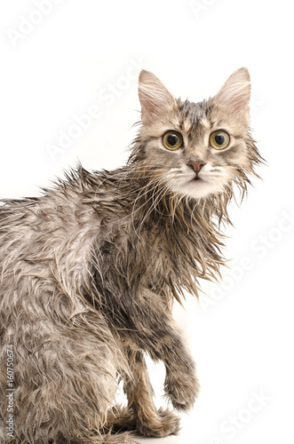 Naklejka premium Wet cat isolated on white
