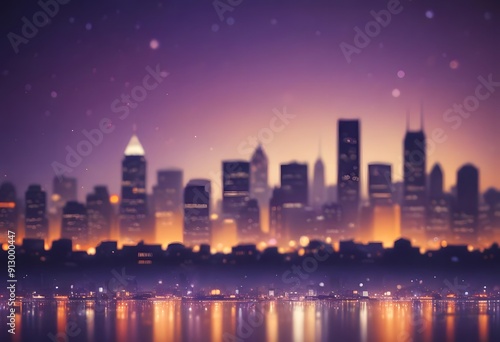 © Anyket, Fototapeta premium Wet city street at night with colorful blurred lights reflecting on the pavement