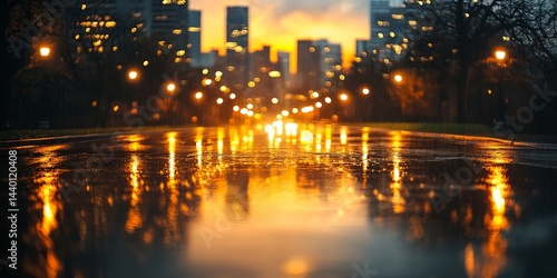© gen_pick, Fototapeta premium Wet City Street at Night with Reflections