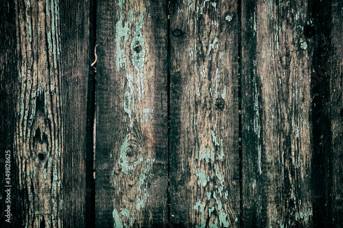 Obraz premium Wet, dirty wooden fence with leftover paint.
