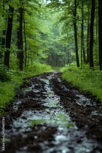 © Soft Light, Fototapeta premium Wet grassland beside muddy paths after rain