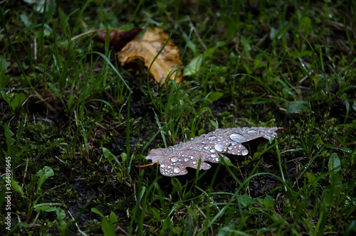 © irina, Obraz premium Wet lime autumn falling leaves