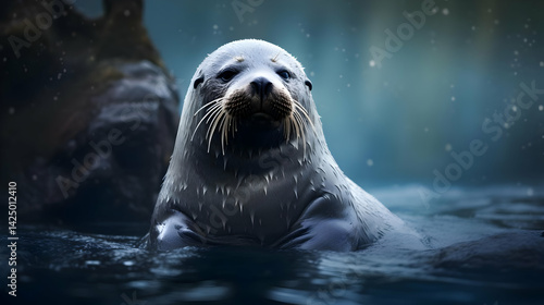 Fototapeta premium Wet Seal in Dark Water at Night