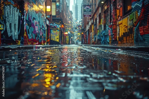Naklejka premium Wet street with graffiti