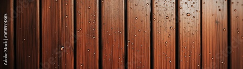 © Photo18@desing, Obraz premium Wet Wood Raindrops on Cedar Planks Detail, Texture , Surface