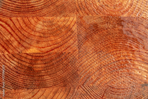 © Lassi M, Naklejka premium Wet wooden background made of glued beams. Raw, unpolished. Texture.