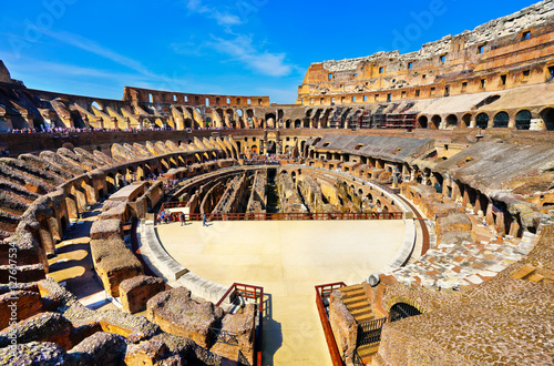 © Javen, Obraz premium Wewnętrzny widok Colosseum w słonecznym dniu w Rzym