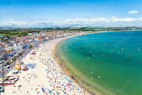 Fototapeta premium Weymouth Beachat summer from a drone, Esplanade, Weymouth, Dorset, England