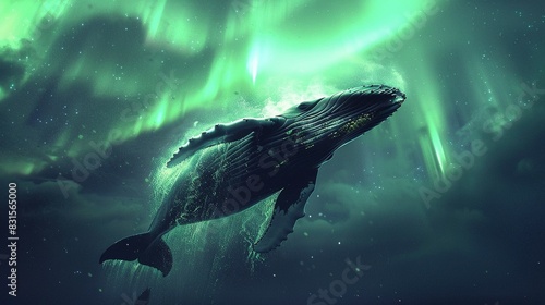 Fototapeta premium Whale Breaching Beneath Dreamy Aurora Display