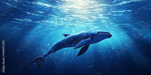 Fototapeta premium Whale breaching in a clean ocean, conservation success.