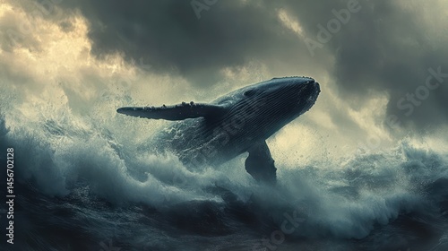 Fototapeta premium Whale breaching stormy ocean