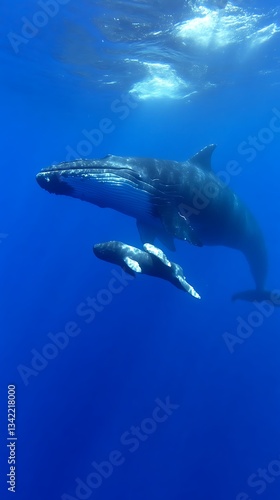 © Ngaji, Fototapeta premium Whale Calf & Mother for Ocean Depths.