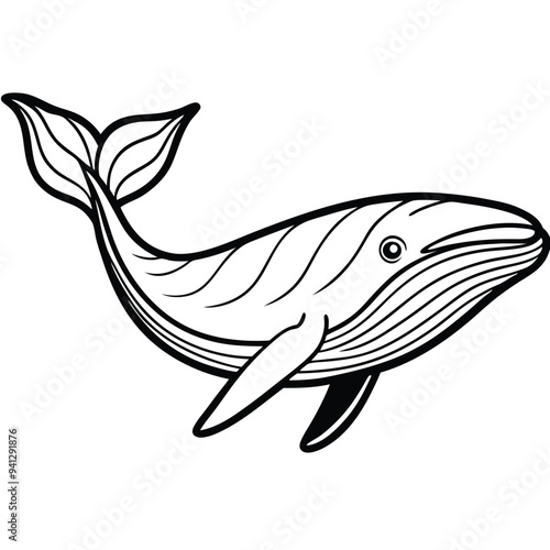 © Tarek, Naklejka premium Whale Cartoon Style Vector on White Background | Animal Illustration, Cute Clip Art