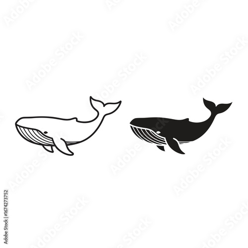 © Masud, Obraz premium Whale icon set black and white