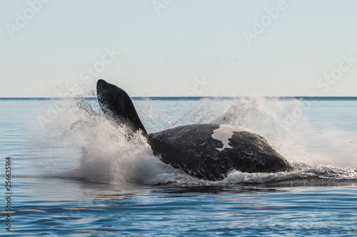 Fototapeta premium Whale jumping in Peninsula Valdes,Puerto Madryn, Patagonia, Argentina