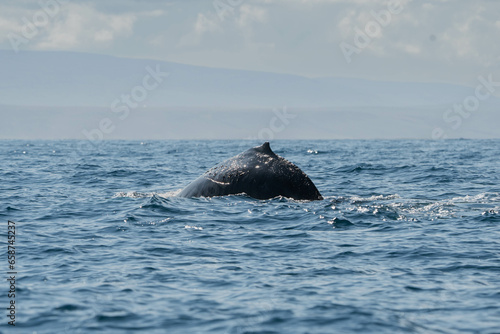 Fototapeta premium Whale jumping off the water and its tail flowing