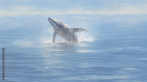 © Trionorejo, Fototapeta premium Whale leaping in ocean, calm sky background