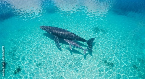 © Usman, Fototapeta premium Whale Mother and Calf in Tropical Ocean