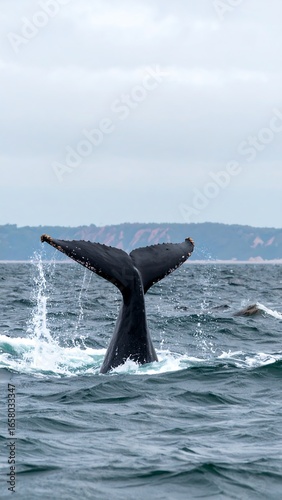 © watashi, Obraz premium Whale's tail breaches ocean surface