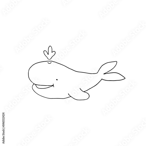 Fototapeta premium Whale. Sea animal. Mammals. Doodle. Vector illustration. Hand drawn. Outline.