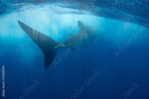© Hedvika, Naklejka premium Whale shark blue background Cancun Mexico