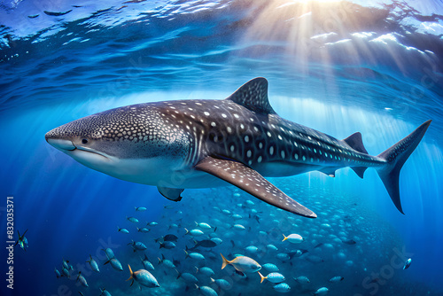 © KingKongThePitbull, Naklejka premium Whale shark in deep ocean