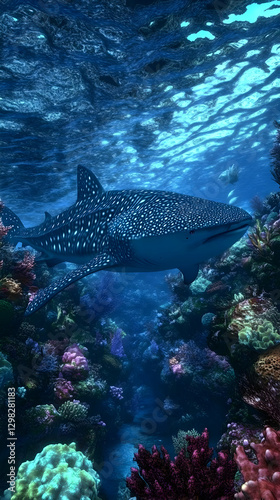 Fototapeta premium Whale Shark in Vibrant Coral Reef 3D Illustration