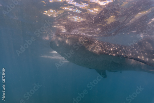 Naklejka premium Whale shark watching in Oslob, Cebu fed with krill closeup