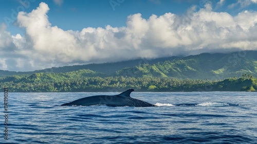 © berkah nikah, Fototapeta premium Whale surfacing near tropical island coastline