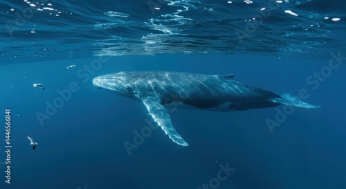 © chiroxima, Naklejka premium Whale swimming underwater photo