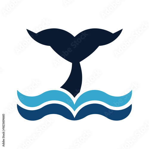 © Mst. Amena Khatun, Fototapeta premium Whale Tail Above Waves Vintage Ocean Scene On White