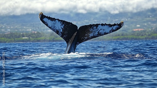 Obraz premium Whale tail breaches the ocean surface