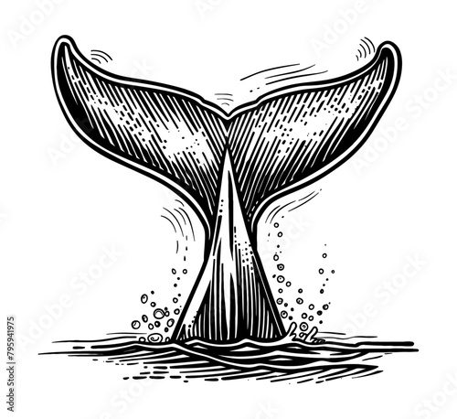 © slowbuzzstudio, Obraz premium whale tail engraving black and white outline