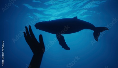 Fototapeta premium Whale Underwater, Human Hand