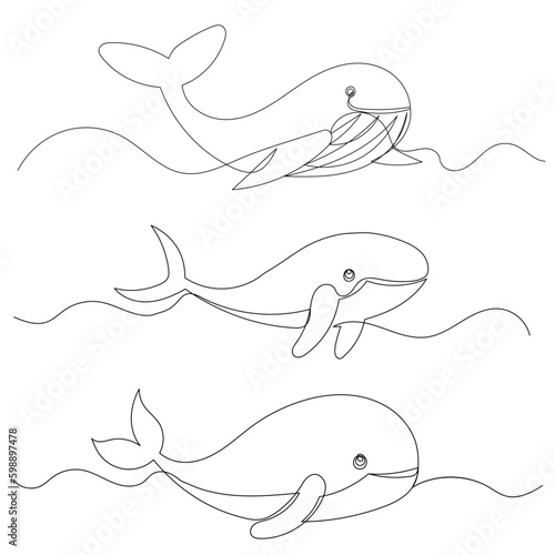 © zolotons, Obraz premium whales continuous line drawing isolated vector