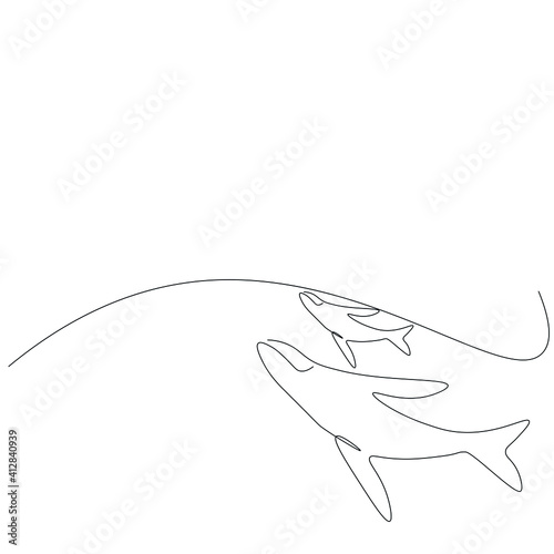 © Keya, Fototapeta premium Whales swimming on ocean drawing, vector illustration