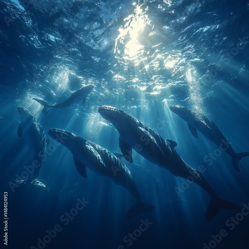 Fototapeta premium Whales Underwater in Sunlit Ocean Depths