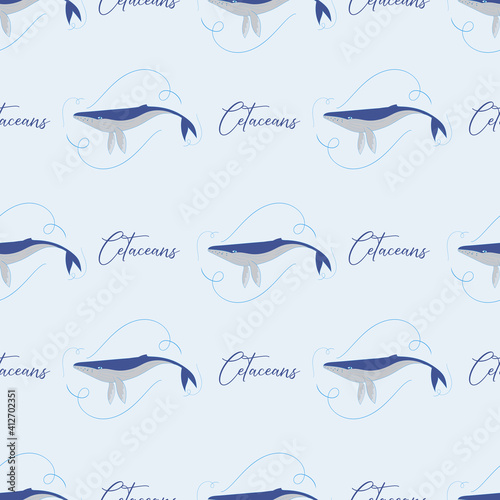 Obraz premium Whales with typography seamless pattern